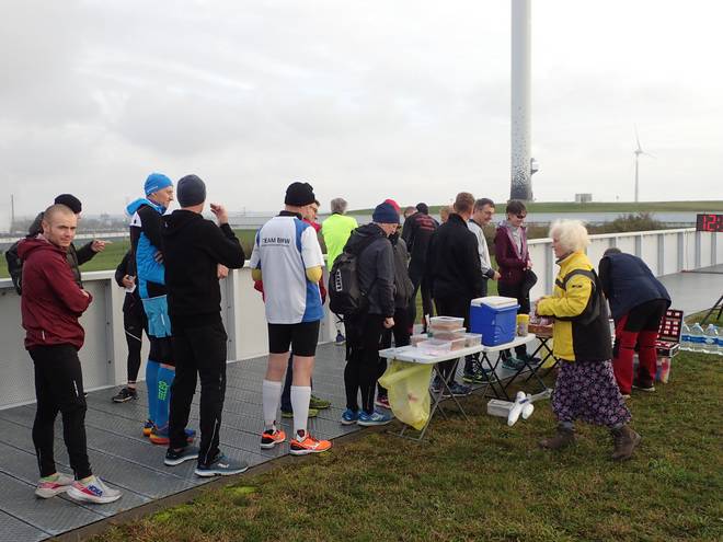 Energieberg Georgswerder 12.36 Uhr Startnummernausgabe und Verpflegungsstand waren identisch. Machte auch Sinn. |