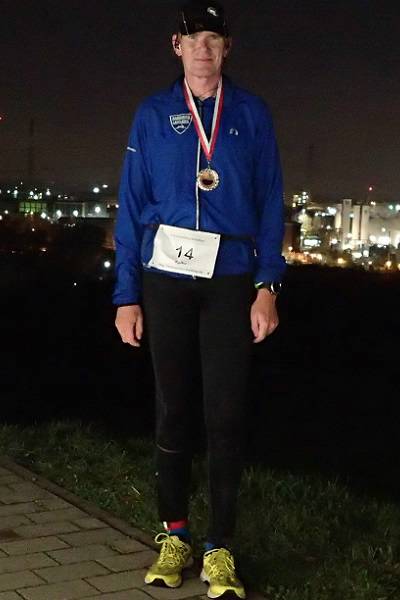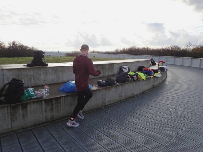 Energieberg Georgswerder 17.48 Uhr Fertig umgezogen und dick eingepackt. Mit der meiner Marathon-Medaille Nr. 313. |
