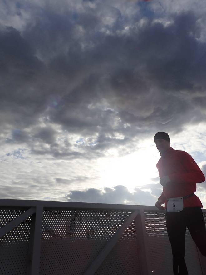 Runde 28 15.52 Uhr / Km 25,7 Sonnenuntergang war erst um 16.32 Uhr, aber schon jetzt verschwand die Sonne. |