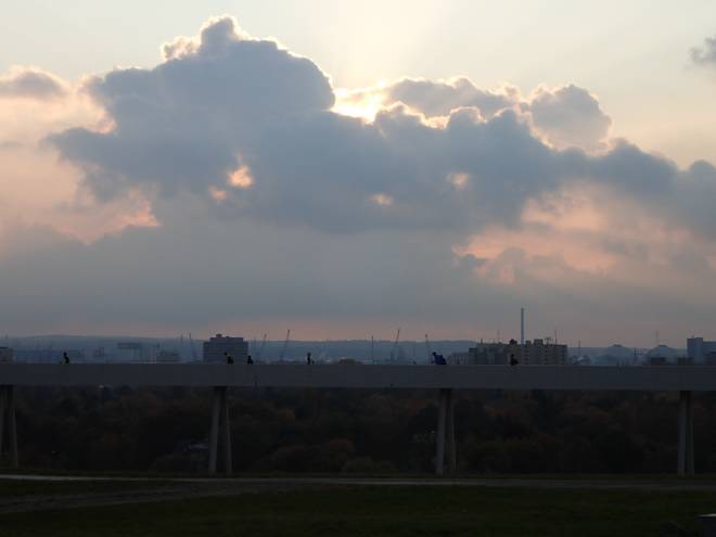 Runde 20 15.01 Uhr / Km 17,7 Um den Energieberg herum wurde es immer dunkler. Hier oben schien aber weiterhin die Sonne. |