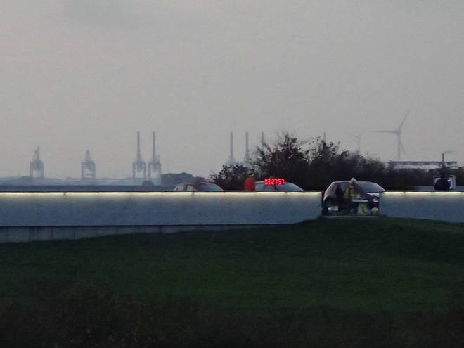 Energieberg Georgswerder 17.53 Uhr Christine fuhr ich dann noch nach Hause. Das war auch toll. Nach dem Überfall vier Tage zuvor hätte ich mich auch kaum nachts zu Fuß durch Veddel getraut. Die Gegend um den Energieberg herum ist schon bei Tageslicht beängstigend. |