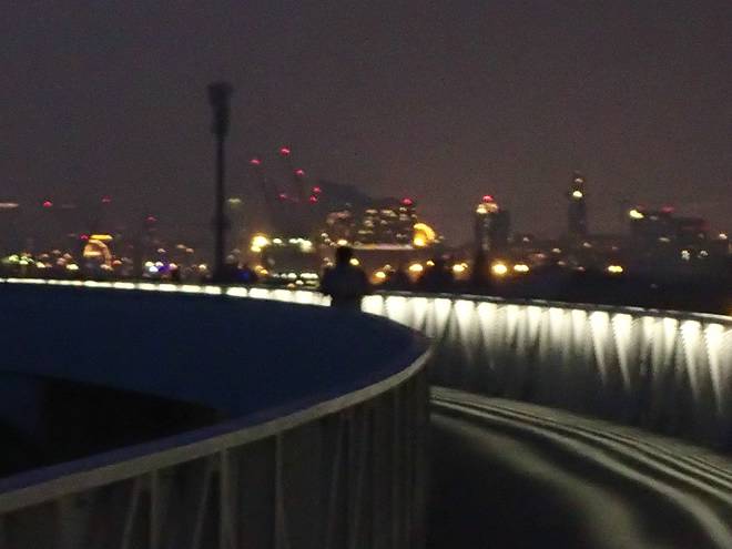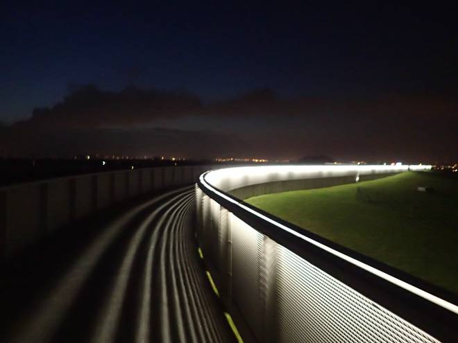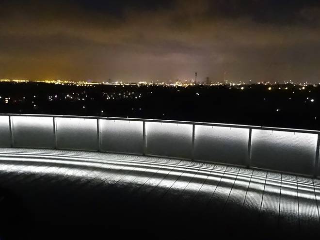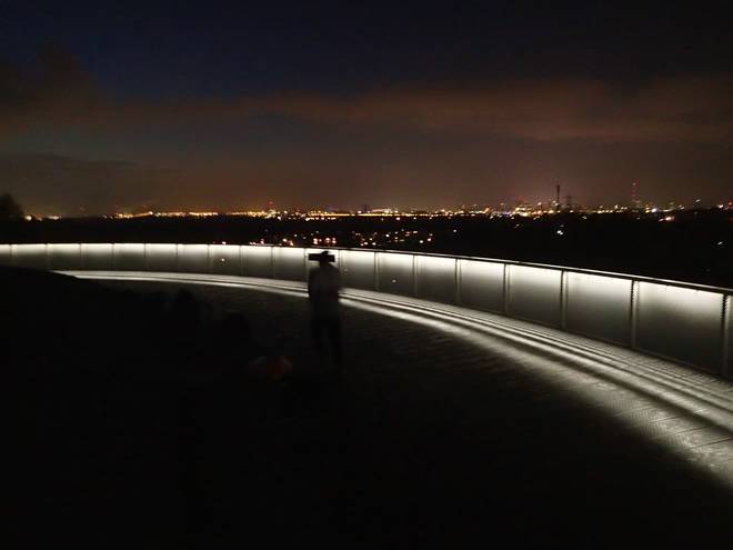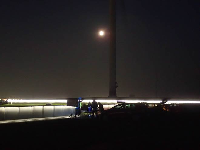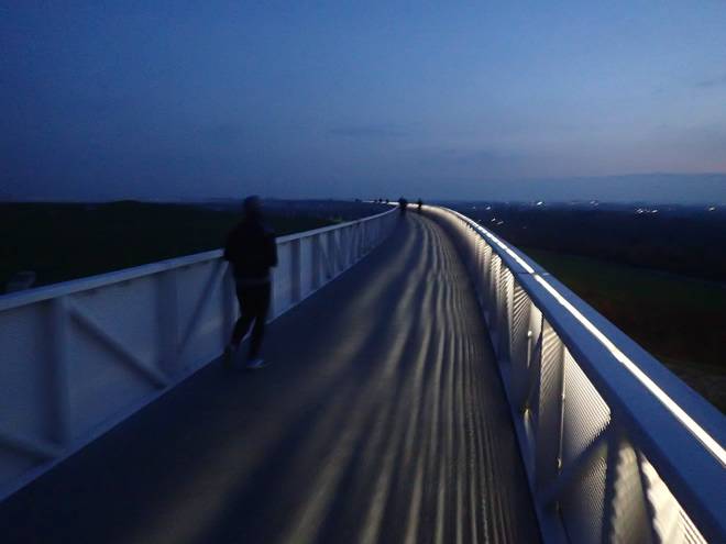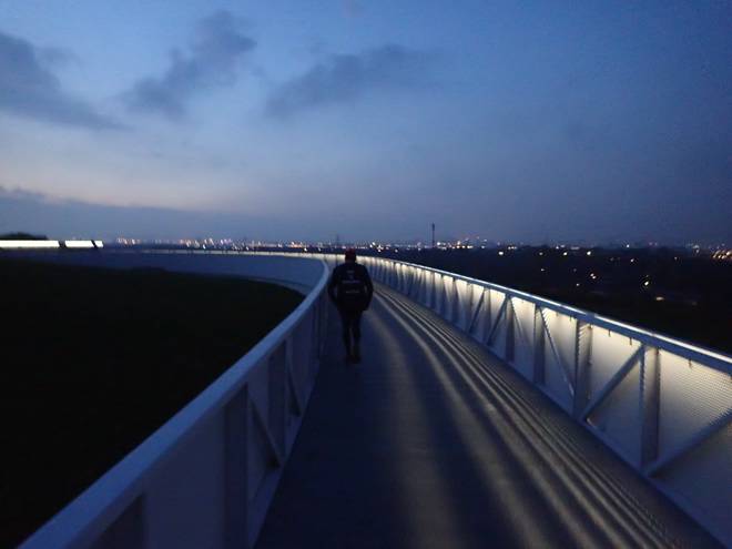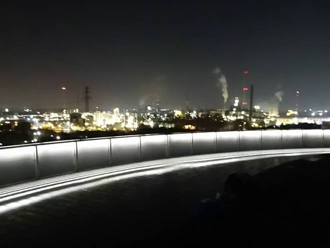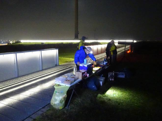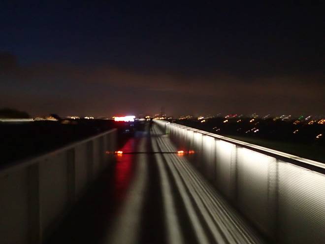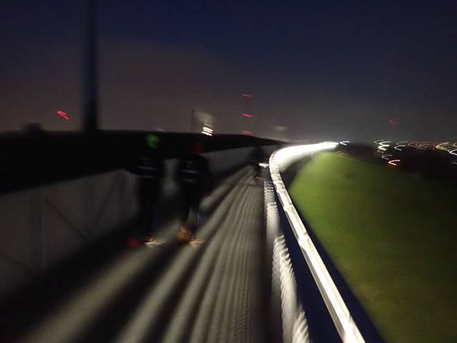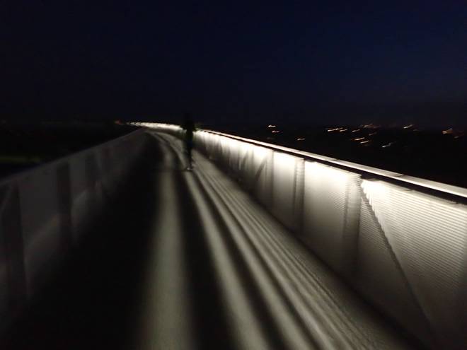 Runde 45 17.26 Uhr / Km 40,8 5:36 und 5:06 Minuten in den Runden 44 und 45. Zuletzt getrunken hatte ich in Runde 42. Runde 44 versuchte ich Nachtfotos, hatte aber keine ruhige Hand mehr. |
