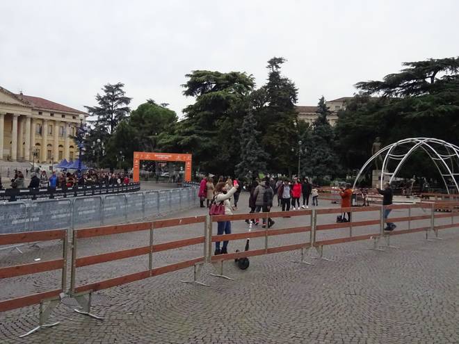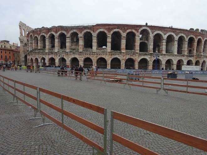 16. November 2019 16.03 Uhr Piazza Brà Wenn man ohnehin alles für zwei Tage absperrt, dann hätte man auch die Marathonies vor der Arena finishen lassen können. |