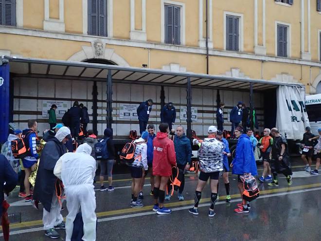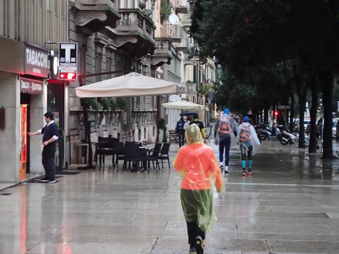 Via Franco Faccio Die Nacht über hatte es ohne Ende geregnet und auch der Wetterbericht für die Zeit des Marathon versprach heftigen Dauerregen. |