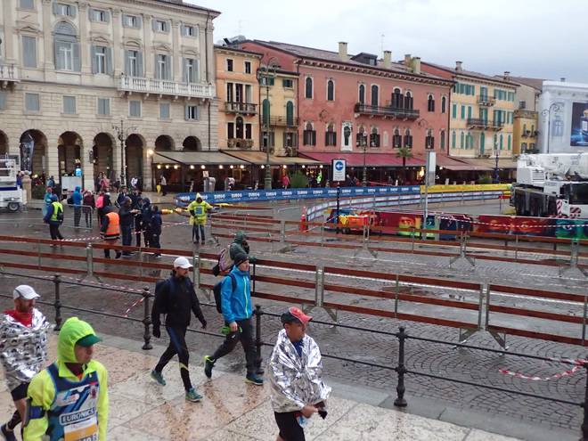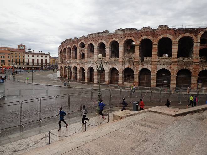 Largo Divisione Pasubio Mura comunali di Verona 8.59 Uhr Der 10-Kilometer-Lauf wurde zehn Minuten später gestartet. |