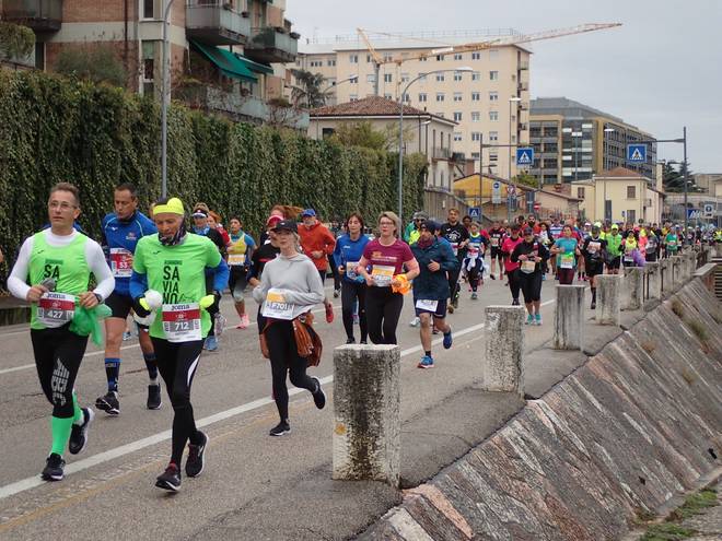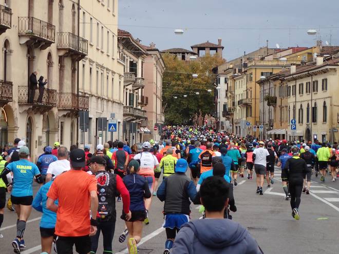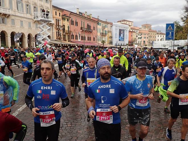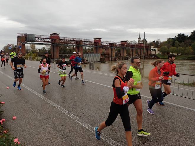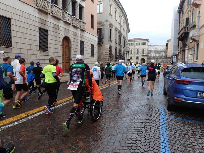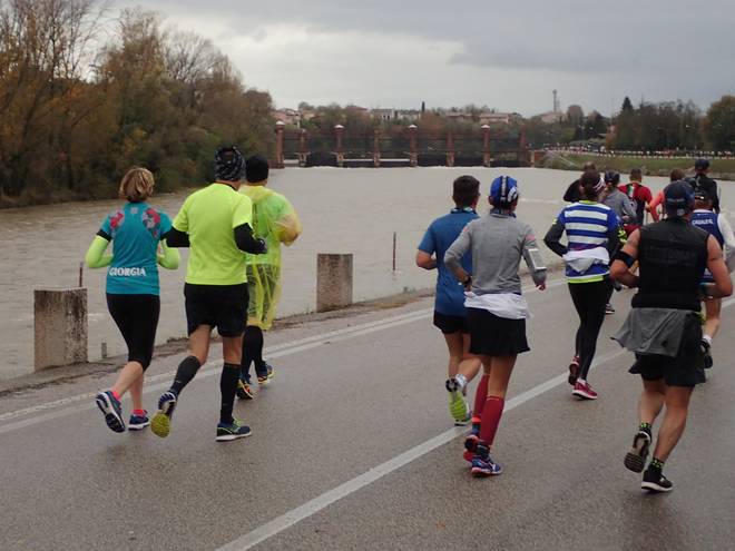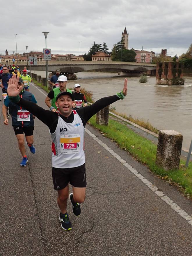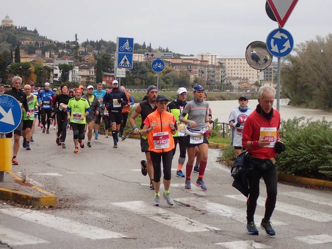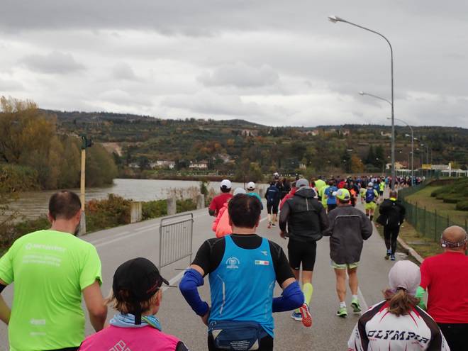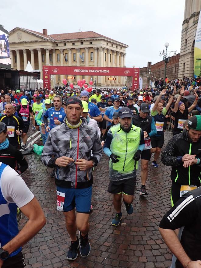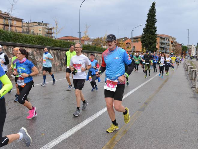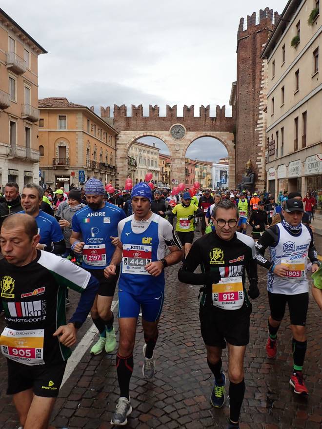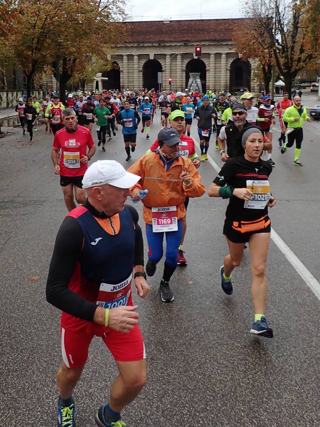 Lungadige Cangrande Ponte di Castelvecchio (Ponte Scaligero) Adige 9.26 Uhr / Km 3,4 Ich hatte mir das Shirt vom Bremen-Marathon 2019 für diesen Lauf ausgesucht. Die 3:46:41 Stunden würde ich sicherlich nicht wiederholen, aber Werbung für den Lauf mache ich immer gerne. Foto: Pica Technology |