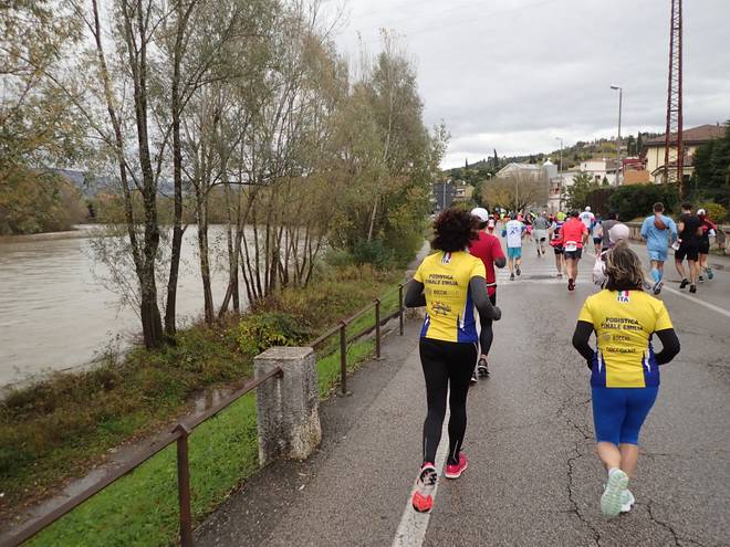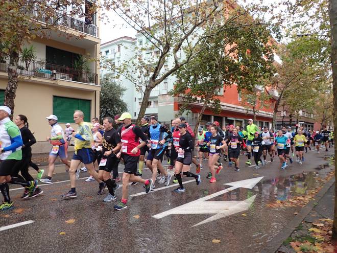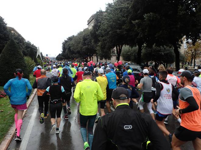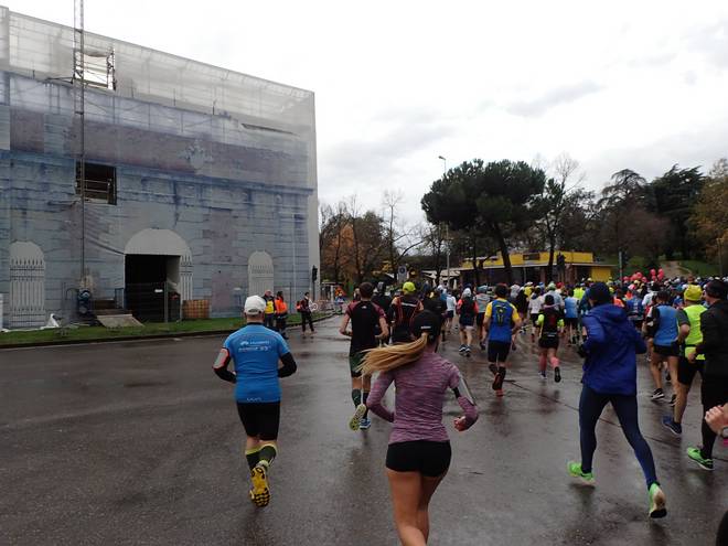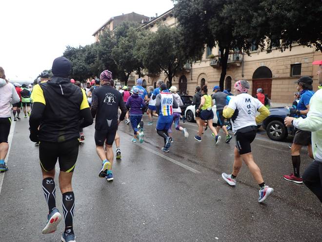 Circonvallazione Oriani 9.12 Uhr / Km 1,2 Gerade am Anfang waren so einige große Pfützen auf der Strecke zu umlaufen. |