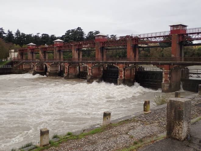 Lungadige Attiraglio Diga di Chievo Adige 9.54 Uhr / Km 7,9 Über das Stauwerk kann man auch drüber laufen. Das holen wir hinter Kilometer 29 nach. |