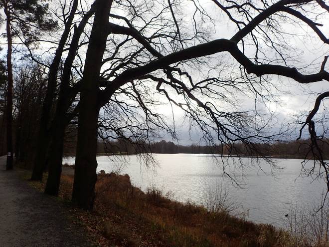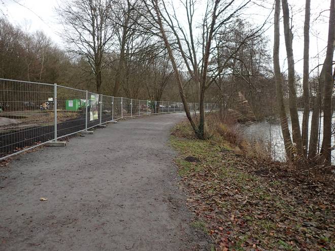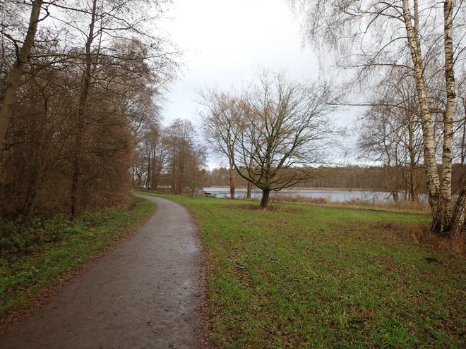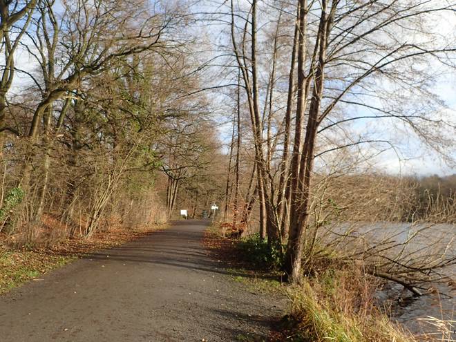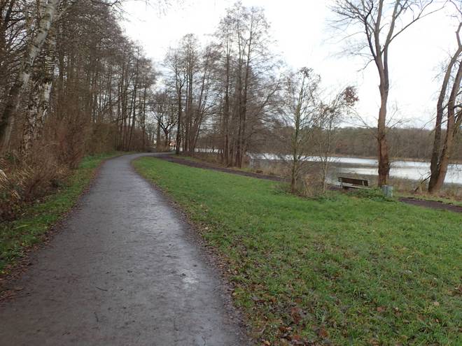 Runde 2 11.48 Uhr / Km 5,9 .. und etwas Zick-Zack auf diesem kleinen Damm. Das machte immer wieder Spaß. Und nun sogar etwas Sonne. Aber bis zum zweiten Foto war sie wieder weg. |