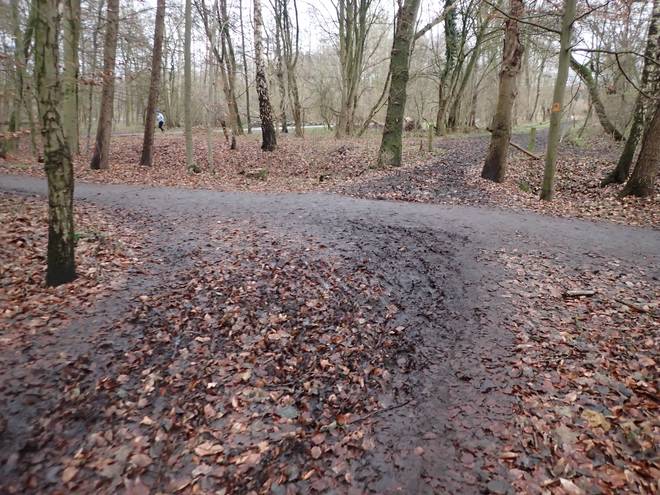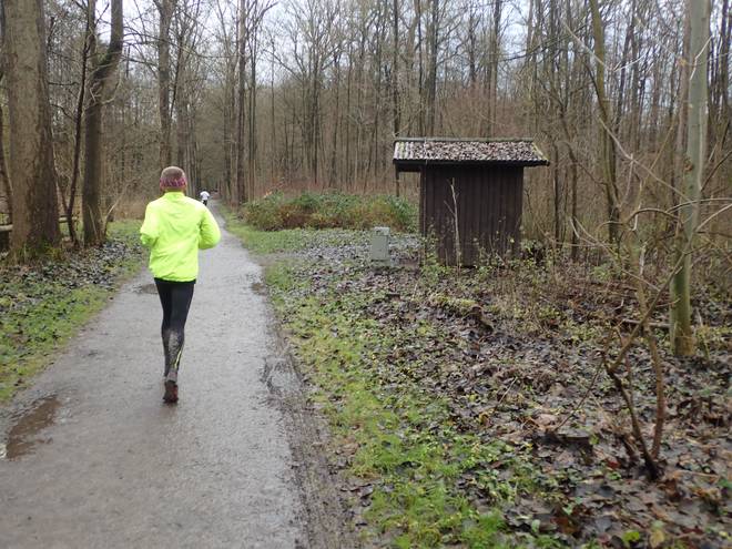Runde 8 14.52 Uhr / Km 35,3 Zum letzten Male für dieses Jahr ging es durch den Wald südlich des Rubbenbruchsees. Die letzte Runde war dann ja wieder verkürzt. |