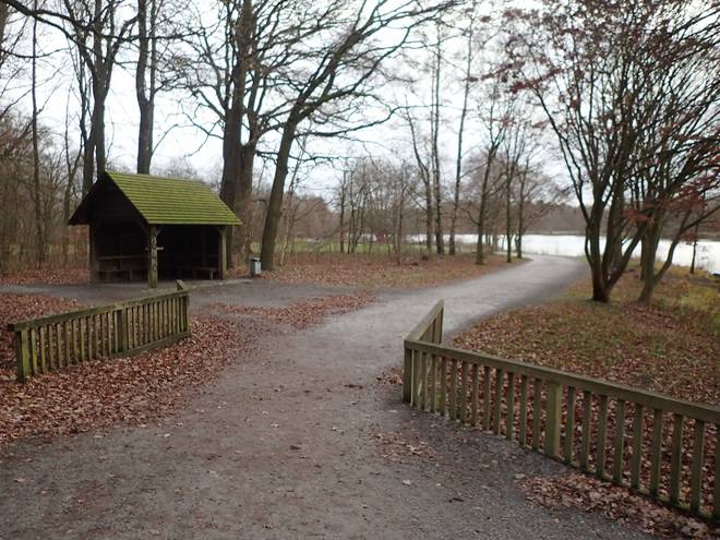 Runde 9 15.21 Uhr / Km 40,3 Anders als die sieben Runden zuvor ging es an der Brücke hier nicht mehr nach links in den Wald, sondern nach rechts weiter am See entlang. |