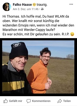 Rubbenbruchsee 16.05 Uhr Kein Marathon und kein Tag wie jeder andere. Das gehört leider auch mit dazu. 2020 wird dann hoffentlich wieder alles wie immer sein. Mit Werder-Trikot und der Zipfelmütze und Weihnachts-Party. |