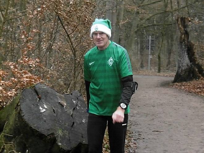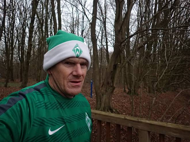 Runde 11 12.53 Uhr / Km 28,3 Dazu kamen noch viele dumme Kommentare wegen meine Zipfelmütze. Und wegen des Werder-Shirts sowieso. Bin ja auch selbst Schuld, wo Werder auf einem Abstiegsplatz stand. |
