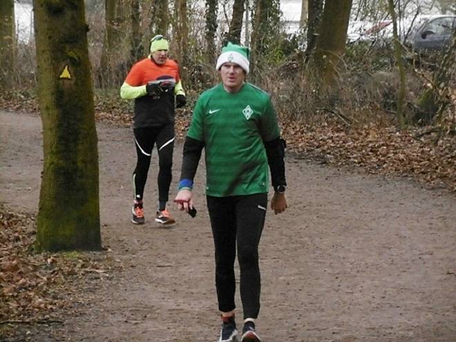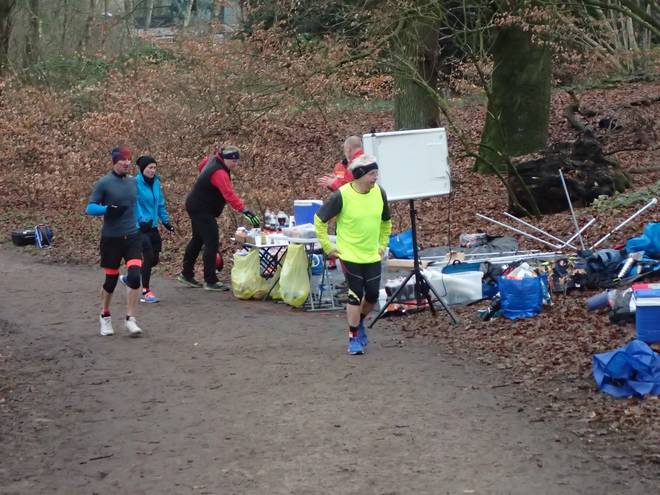 Runde 14 13.55 Uhr / Km 35,3 Das Hörbuch war vorbei, nun lief nur noch Musik. Und zwar Weihnachtsmusik. Aber echte Weihnachtsstimmung wollte nicht aufkommen. |