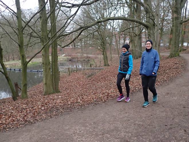 Volksdorfer Teichwiesen 16.02 Uhr Wandern und Laufen mögen zwar verschiedene Dinge sein, aber danach tun einem die Beine weh. Egal was. Ganz identisch ist es aber doch nicht. Die Schmerzen hielten zwar wie beim Laufen zwei Tage an, aber es taten ganz andere Stellen weh. |