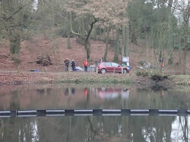 Volksdorfer Teichwiesen 8.17 Uhr Vor Ort war der Aufbau schon im Gange. Der Pavillon wollte sich nicht aufbauen lassen. Da aber kein Regen angekündigt war, war das nebensächlich. |