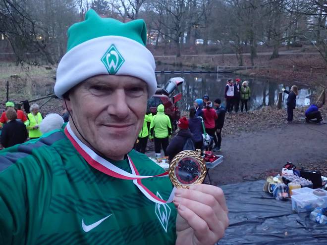 Runde 14 14.00 Uhr / Km 35,9 In den vergangenen Jahren machte ich den Weihnachts-Lieder-Marathon immer am Rubbenbruchsee. Wegen eines Trauerfalls verschob ich es in 2019 an die Teichwiesen. Nur vier Tage nach der Beerdigung war mir immer noch nicht nach Feiern. |