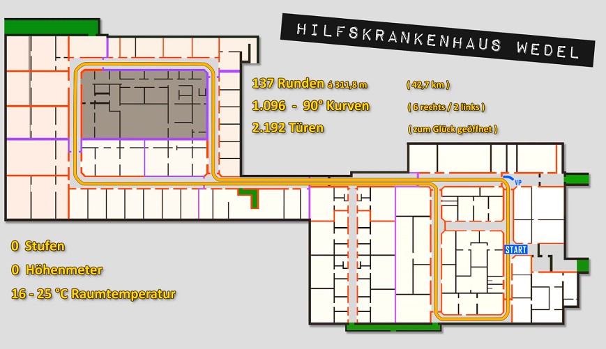 Hilfskrankenhaus Wedel 9.53 Uhr Die Runden wurden zum Glück elektronisch gezählt. Anders hätte man das auch gar nicht kontrolliert gekriegt. |