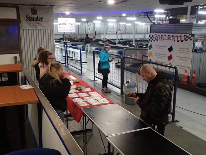 Kartcenter Dinslaken 9.15 Uhr Schon Wochen vor dem Lauf war die Veranstaltung restlos ausgebucht. Also schnell die Startnummer abgeholt, ehe es zu voll wurde. |