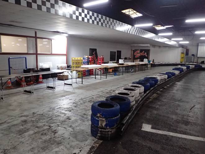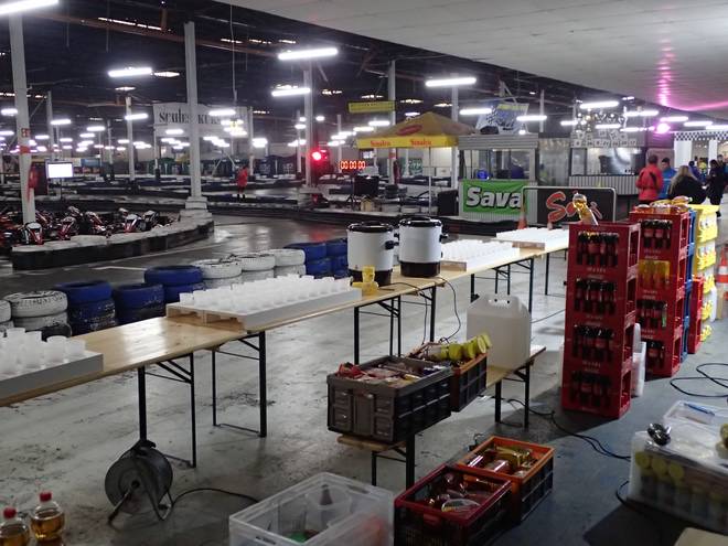 Kartcenter Dinslaken 9.37 Uhr Der Verpflegungsstand war in der Boxengasse aufgebaut. |