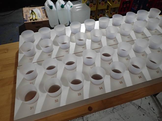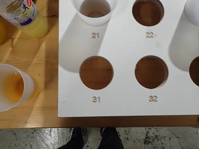 Runde 19 13.41 Uhr / Km 28,74 Ey Mann, wo ist mein Becher? Schwer zu sagen. Die Becher selbst waren nicht nummeriert. Ich nahm mir einfach einen der umher stehenden. |