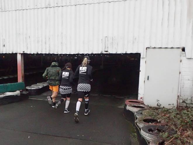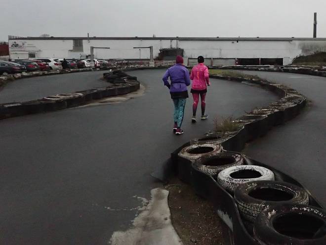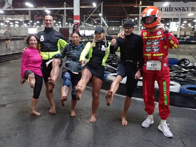 Kartcenter Dinslaken 9.46 Uhr Barfuß?? Wow. Bei 4°C. Na gut... die Strecke war sauber, aber trotzdem. Es war immer noch klannharter Asphalt. |