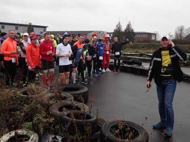Kartcenter Dinslaken 9.51 Uhr Die 69 Halbmarathonläufer sowie 124 Marathonläufer hörten mehr oder weniger aufmerksam zu. |