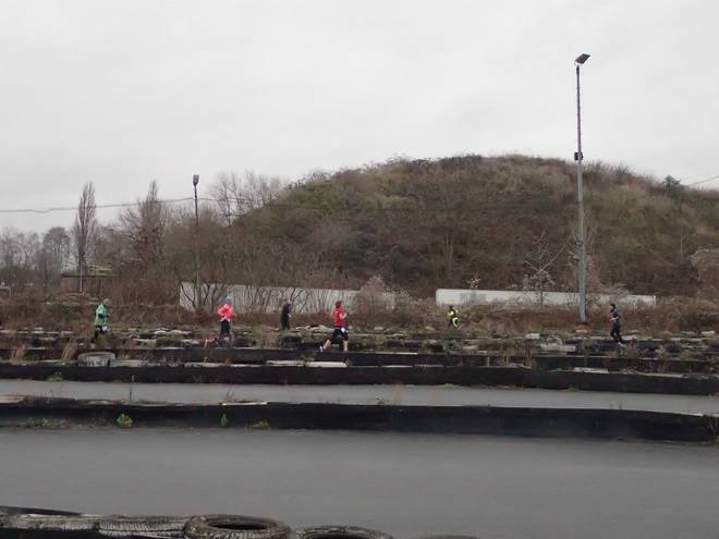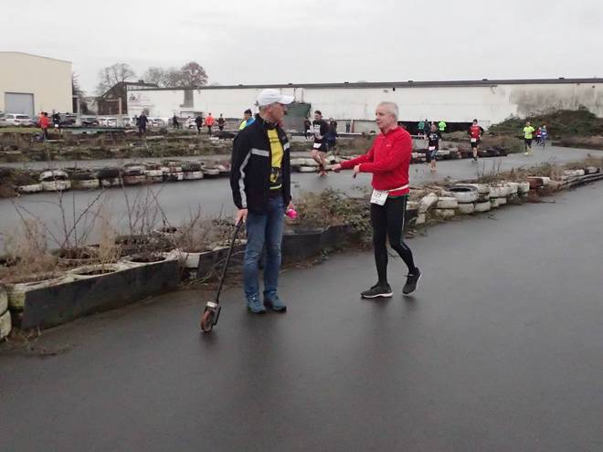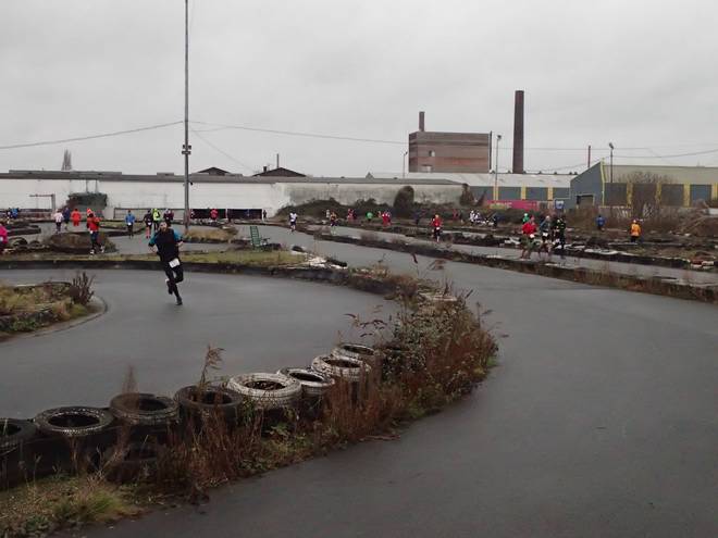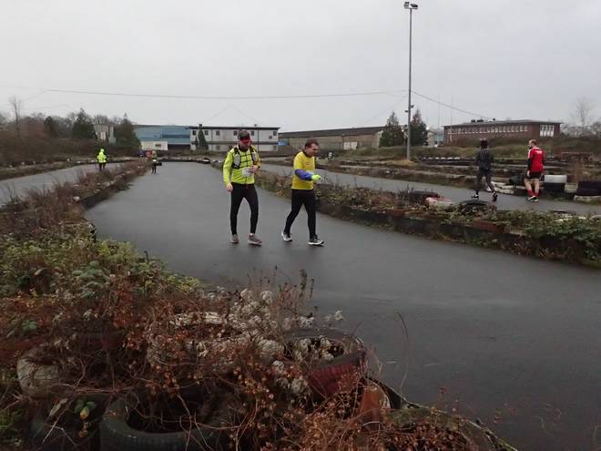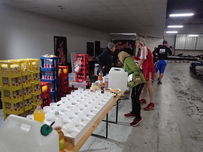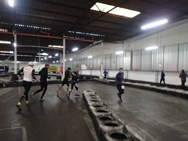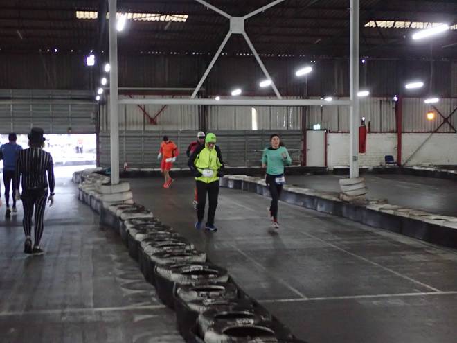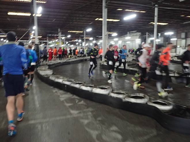 Runde 16 12.50 Uhr / Km 23,6 Einziger Vorteil des Wanderns: Fotografieren war einfacher. Sowohl in der Halle als auch draußen waren sehr schlechte Lichtverhältnisse. Die Masse der Fotos während des Laufens wurde nichts. Beim Wandern war die Quote besser. |