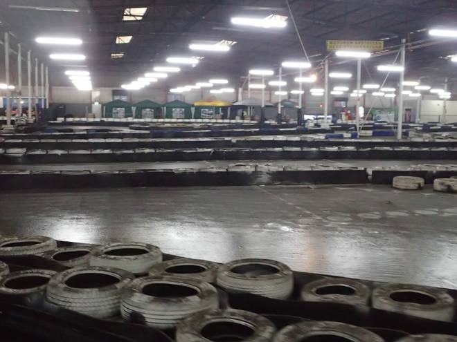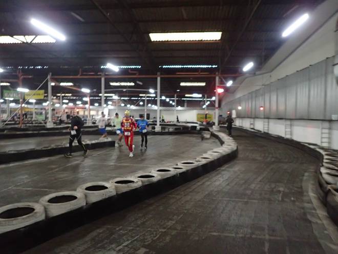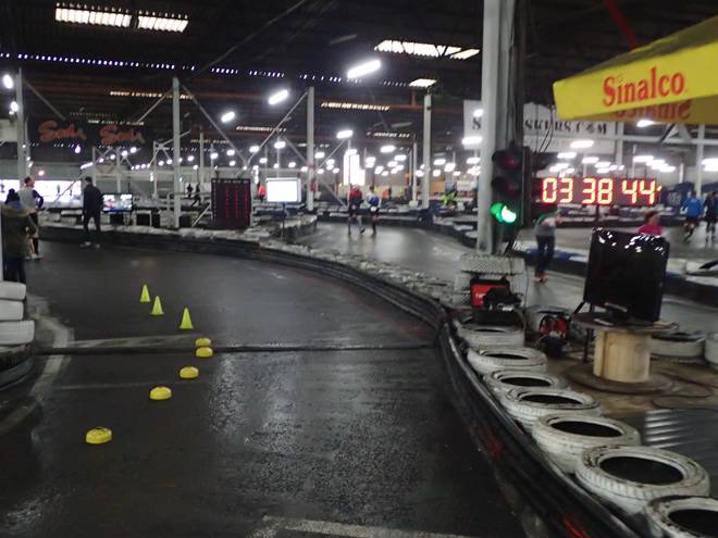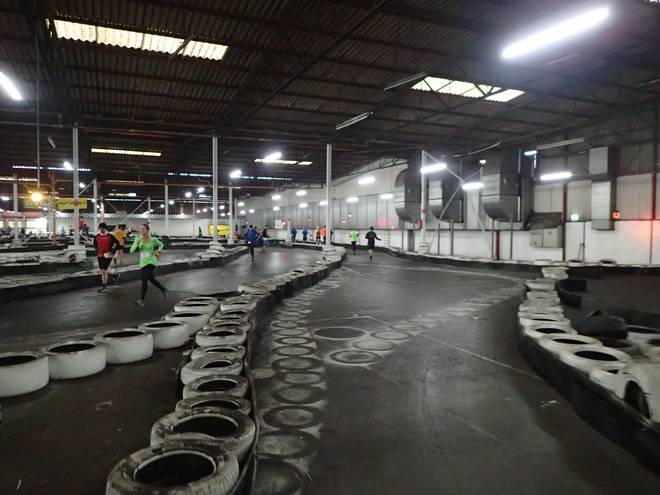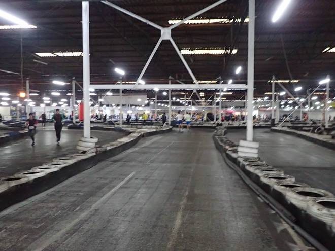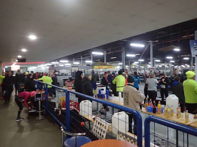 Runde 28 15.30 Uhr / Km 42,1 Alles leer. Noch eine Stunde, dann würde die Halle wieder von den Karts übernommen werden. |