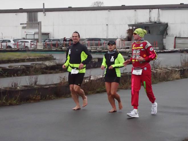 Runde 16 12.53 Uhr / Km 24,0 Die Barfuß-Läufer hielten tatsächlich durch. Respekt. |