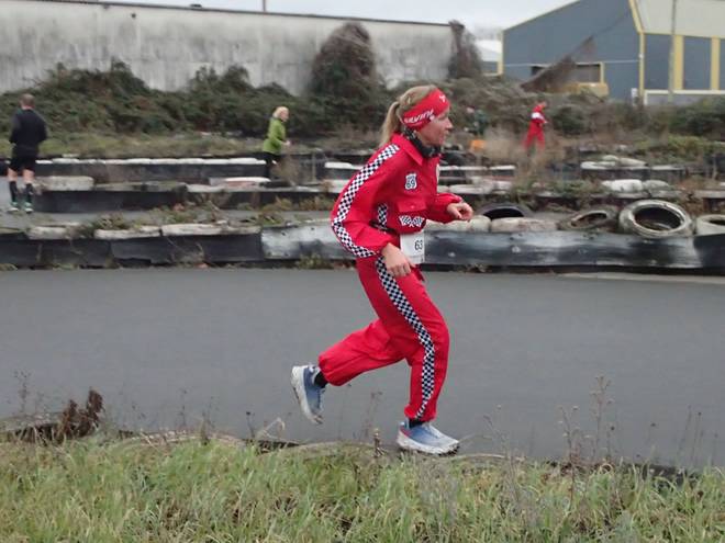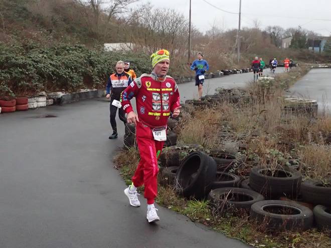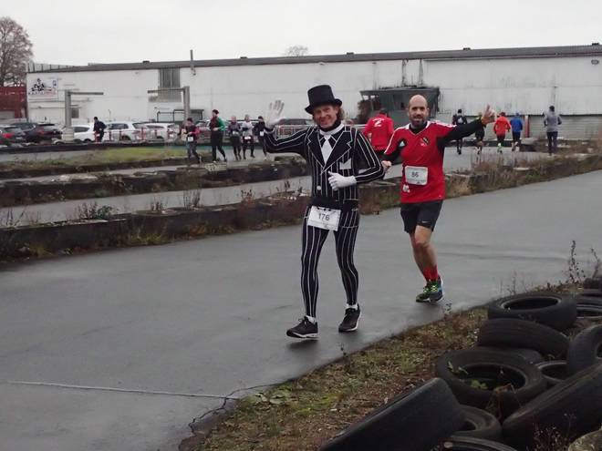 Runde 9 11.32 Uhr / Km 12,8 Einige Teilnehmer hatten sich passend zum Veranstaltungs-Ort angezogen. Es gibt aber sehr wenig Laufklamotten in Motorsport-Outfit. |