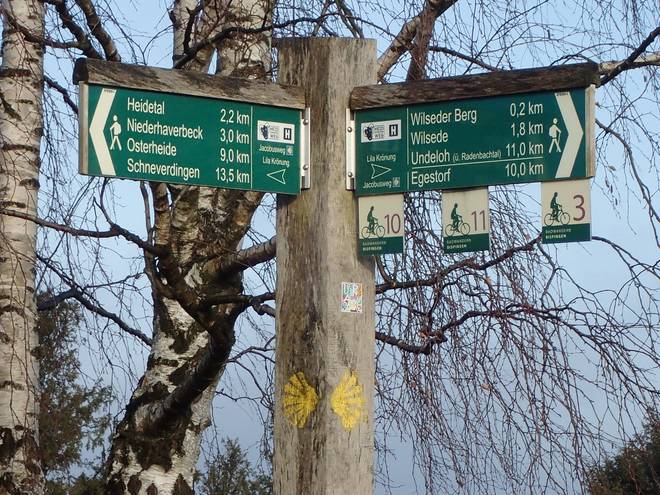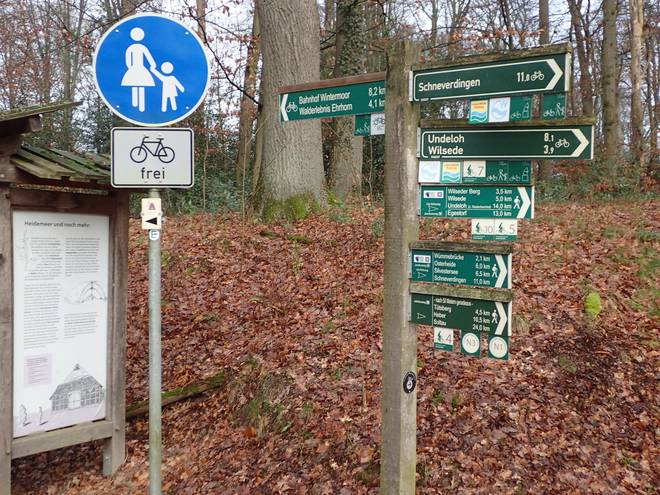 11.19 Uhr / Km 11,6 Augen auf. In dieser Gegend führt fast jeder Weg Richtung Wilsede und/oder Wilseder Berg. Da sollte man schon genau gucken, ob man auch richtig ist. |