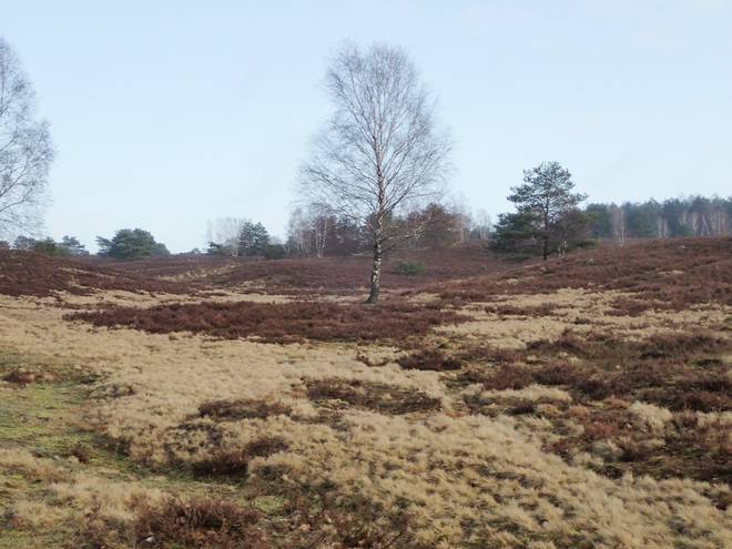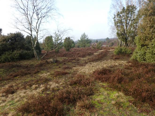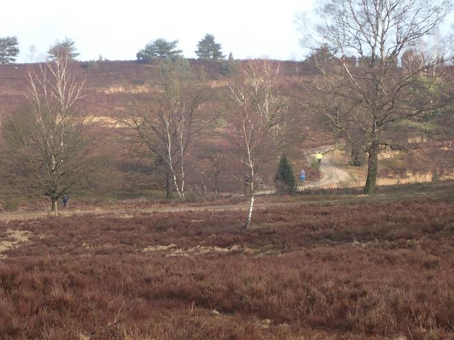 11.25 Uhr / Km 12,4 Nun ging es wieder durch die Heide. Es blieb aber weiterhin hügelig. |