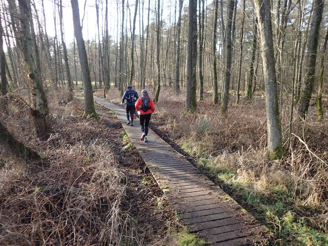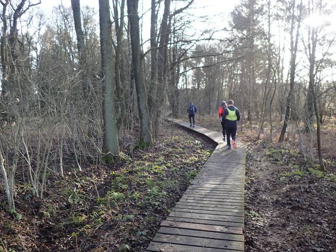 13.38 Uhr / Km 31,0 Teilweise ging es nun auf Bohlenwegen weiter. Immer noch besser als durchs Moor. |