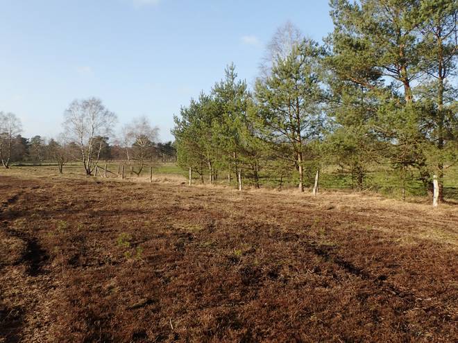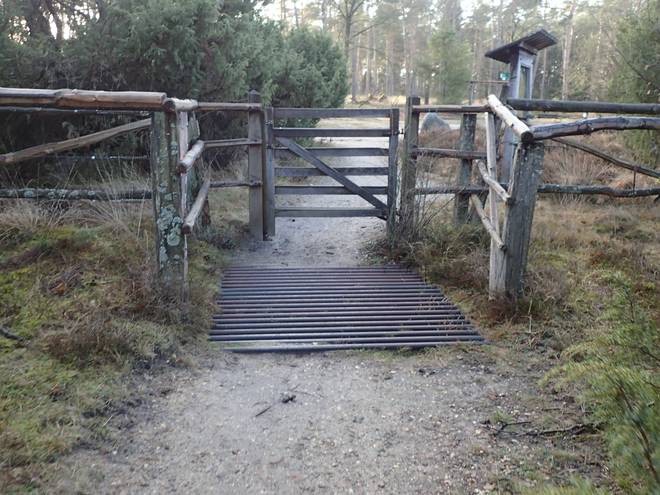 13.46 Uhr / Km 32,1 Hinter dem Gatter ging es in die Heide zurück. |