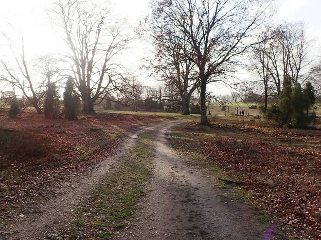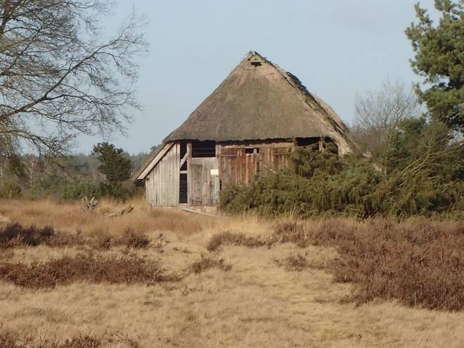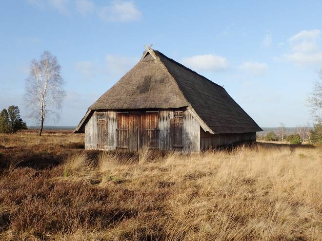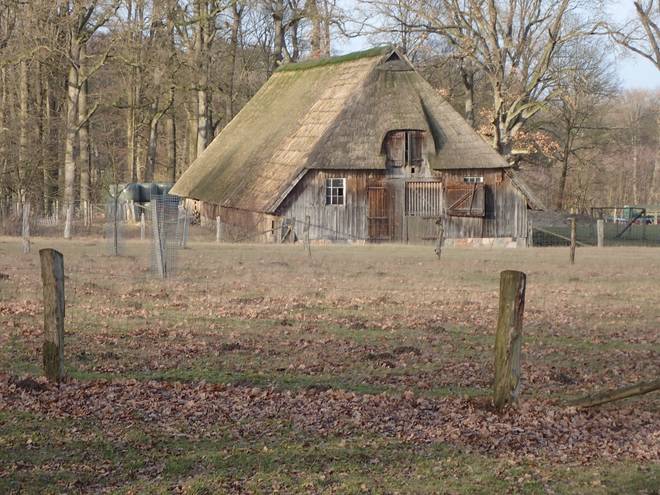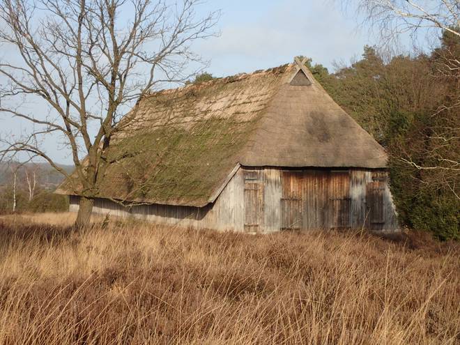 Wilsede 14.18 Uhr / Km 36,6 Hier war ich beim Kilometer 15,4 gewesen und dann zum Totengrund gelaufen. Nun ging zurück nach Schneverdingen auf demselben Weg wie ich hergekommen war. Nur in die Gegenrichtung. |