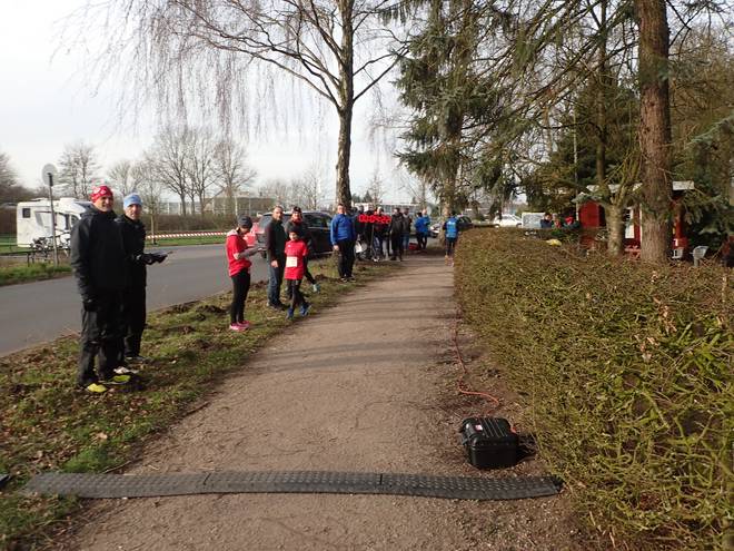 Runde 11 10.54 Uhr / Km 7,238 43:53 Minuten für die ersten zehn Runden. Die Matte liegt etwas hinter mir. Sonst würde der Zeitchip ständig auslösen, wenn man sich zu trinken am Verpflegungsstand holt. |