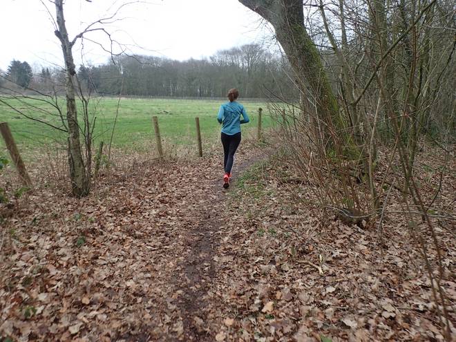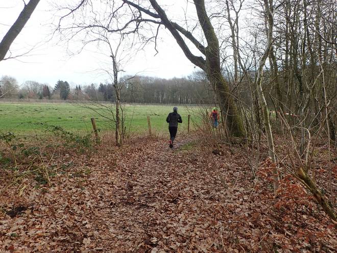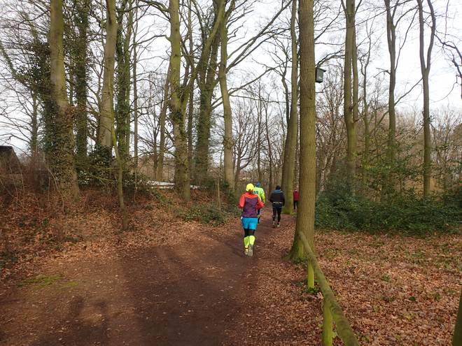 Runde 3 10.22 Uhr / Km 1,8 Es sieht hier vielleicht nicht ganz so aus, aber die Strecke war gut belaufbar. Auch hier durch das Laub. |
