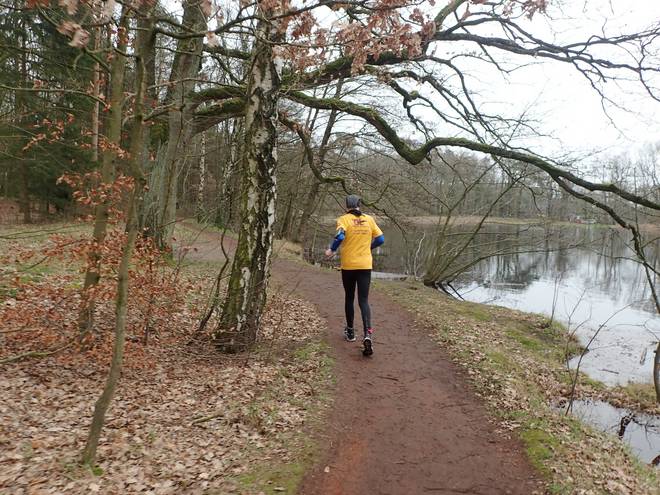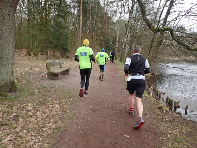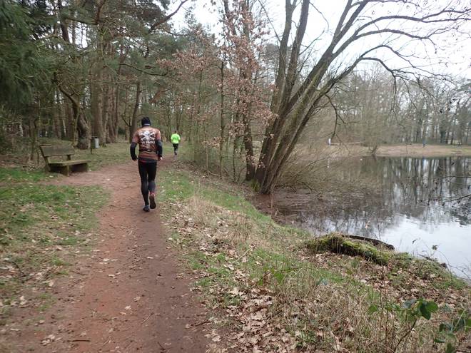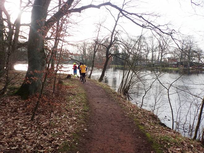 Runde 1 10.13 Uhr / Km 0,3 Gelaufen wurde immer um den See hinter dem Restaurant herum. |