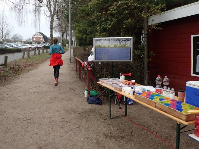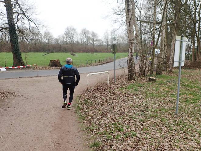 Runde 19 11.34 Uhr / Km 13,4 Aber seit 2017 geht es nicht "nur" um den Tagessieg. Es gibt ja noch die Cup-Wertung zusammen mit dem Grönland-Marathon. 2017 wurde ich Dritter, 2018 und 2019 jeweils Zweiter. 2020 fanden die beiden Läufe zum ersten Male an einem Wochenende statt. Sonst lag immer eine Woche dazwischen. Das schreckte offenbar viele super-schnelle Läufer ab. Ich konnte mir also Hoffnung auf einen weiteren guten Platz machen. (Foto: Andreas Villwock) |