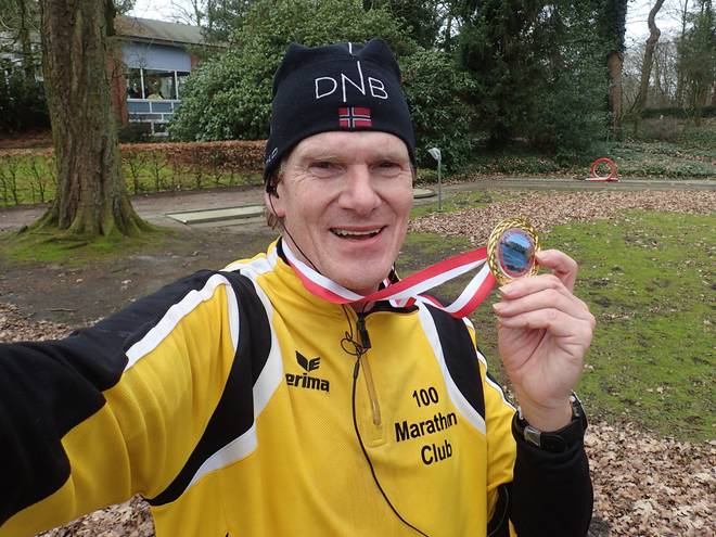 Finish 14.30 Uhr / Km 42,704 Geschafft. Und das richtig gut. Die letzte Runde war mit 3:57 Minute meine schnellste des Tages. Nun dabei: Meine Marathon-Medaille Nr. 322. |