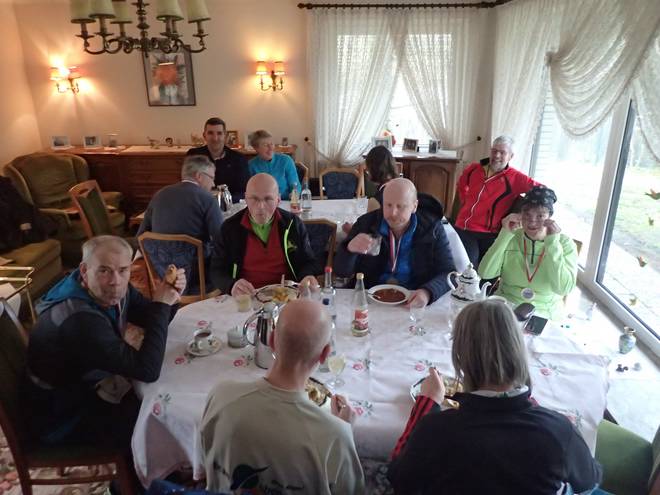 Sibirien 10.08 Uhr Auch Heike Thormählen, die Besitzerin der Gaststätte und somit Gastgeberin, hieß uns willkommen. In den letzten Jahren gab es jeweils ein tolles Buffet im Restaurant. Das Restaurant war diesmal aber voll. Also gab es einen Grill-Pavillon für die Staffel-Läufer. Alle anderen wurden in das Privathaus von Oma Sibirien eingeladen. Was? Ich war mir sicher, mich verhört zu haben. Das Buffet war immer schon eine Klasse für sich. Nun aber zu Oma ins Privathaus? |