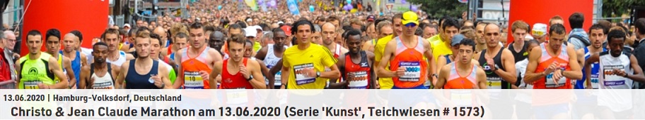 Finish 14.16 Uhr / Km 42,195 In Ehrerbietung an die beiden Namensgeber des Marathons (Christo & Jeanne Claude) wurde die Medaille zunächst einmal verhüllt. |