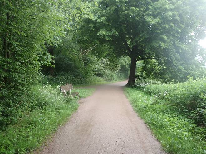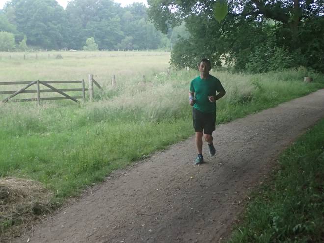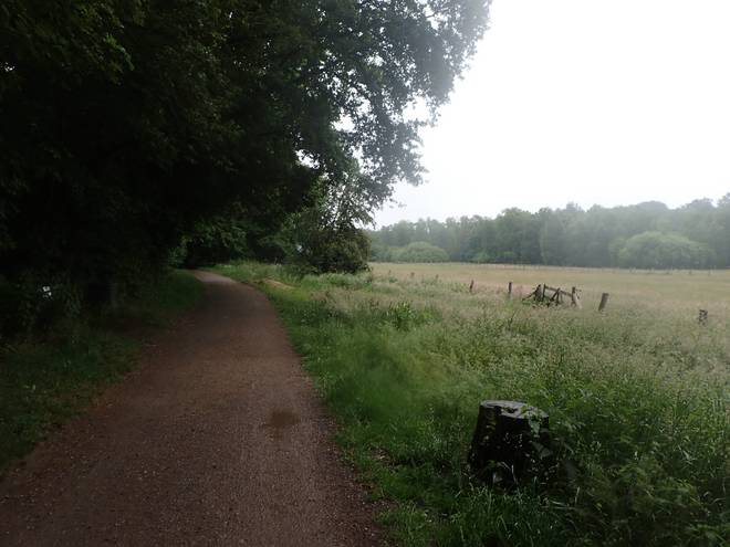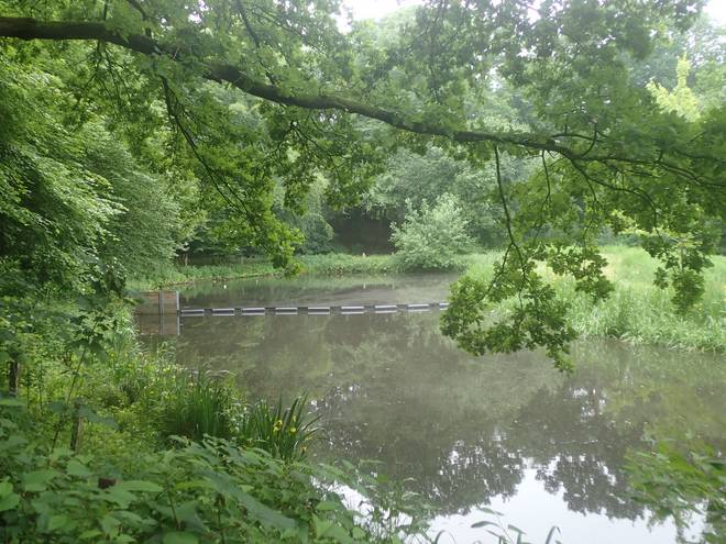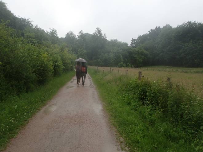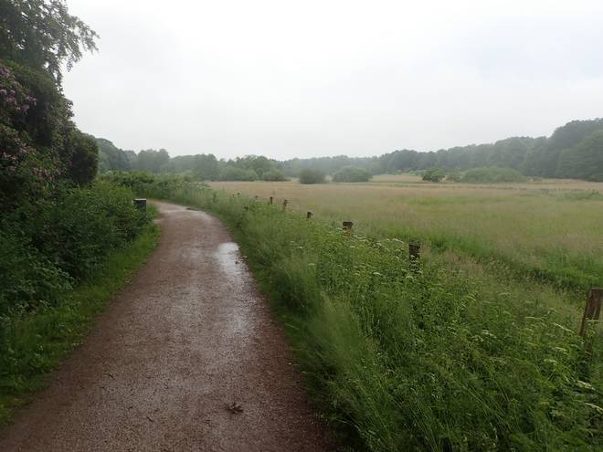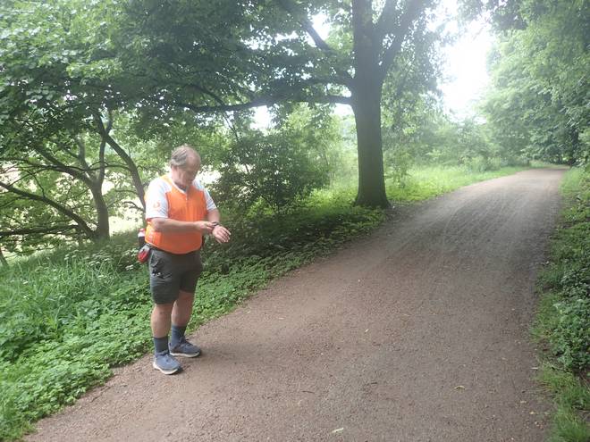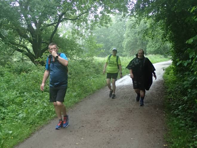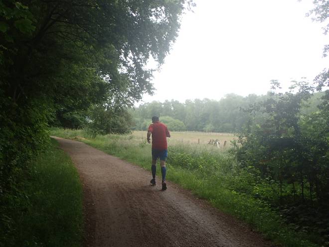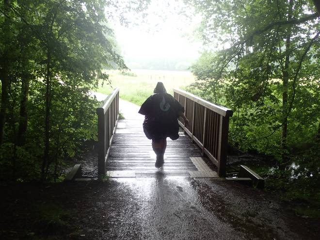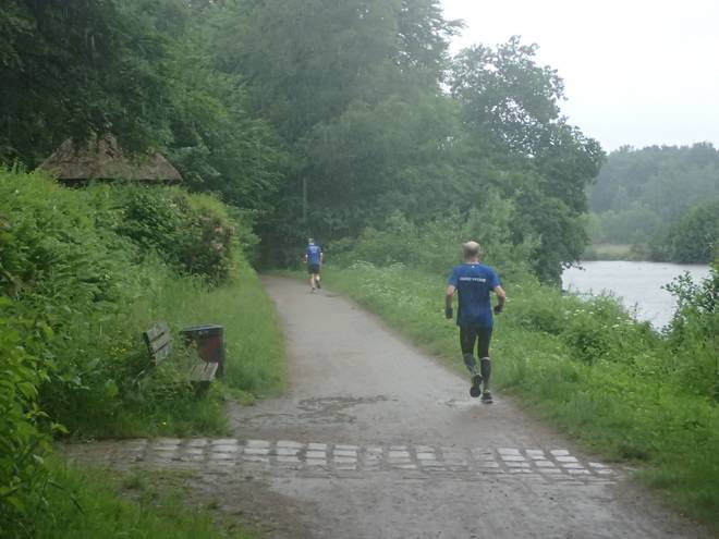 Runde 14 13.34 Uhr / Km 35,6 Ein paar Spaziergänger waren trotz des Regens unterwegs. Aber davon abgesehen hatten wir die Teichwiesen nun für uns alleine. |