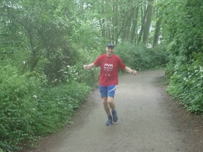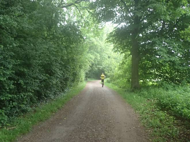 Runde 14 13.38 Uhr / Km 36,2 Wolfgang auf dem Weg zum Ziel. Er lag auch zwei Runden vor mir. |