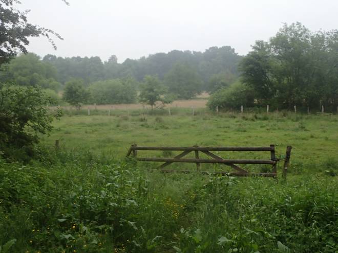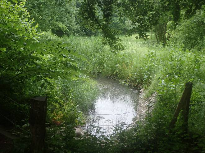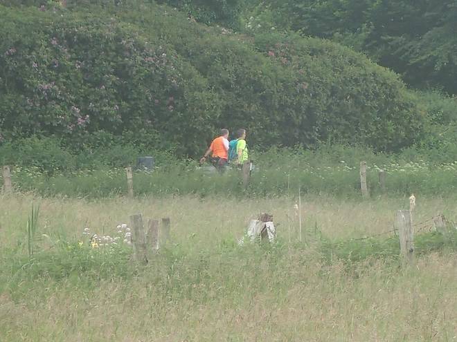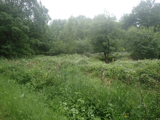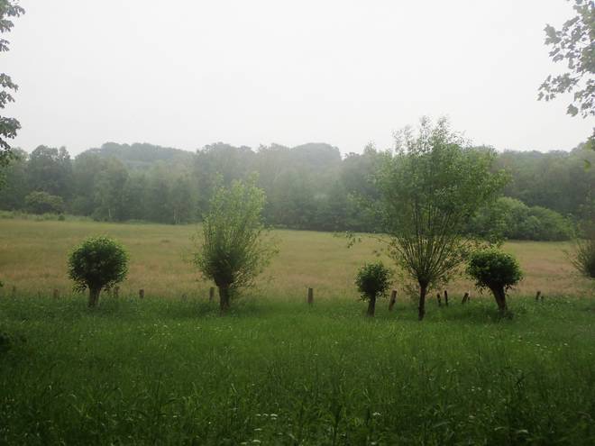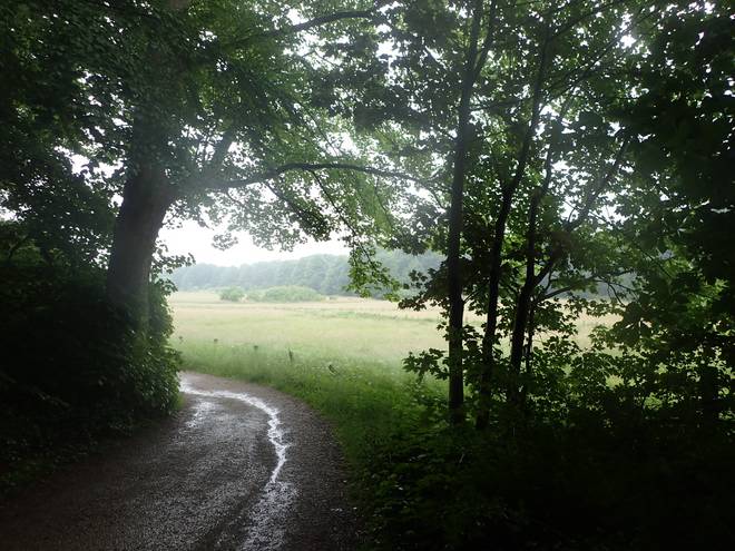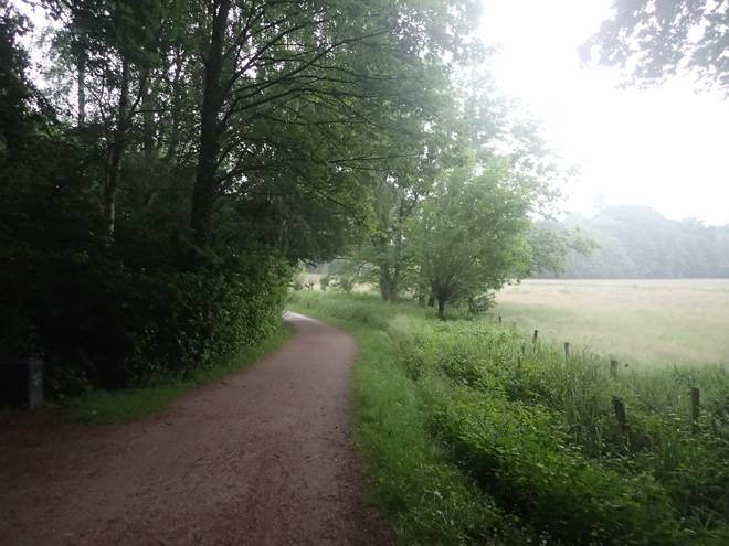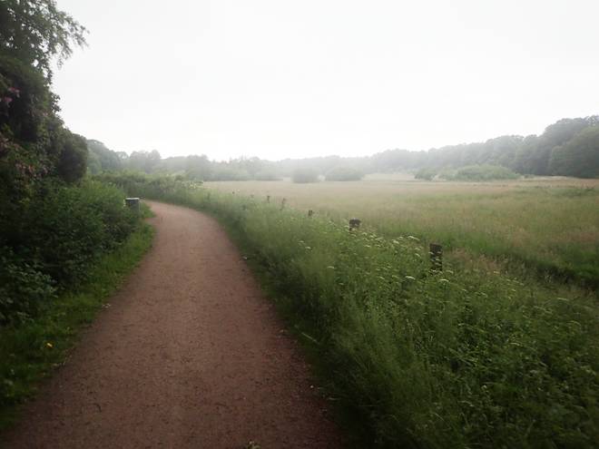 Volksdorfer Teichwiesen 8.37 Uhr 17°C zu Beginn. Allerdings war es schwül. Die ganze Nacht hatte es geregnet und nun dampfte die Feuchtigkeit aus den Wiesen. |