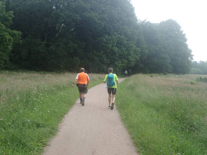 Volksdorfer Teichwiesen 8.37 Uhr Es ging richtig gut los. Es war trocken. Der Wetterbericht hatte viel Regen den ganzen Tag über vorhergesagt. Aber zumindest zum Start schaffte ich es trocken. |