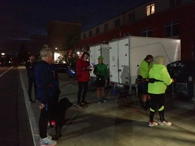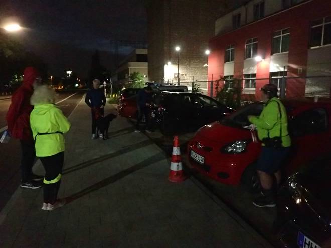 Reiherdamm 2.57 Uhr Neun Starter waren am frühen Morgen zur Kaffeeklappe gekommen. Darunter zwei Teilnehmer (und ein Hund) aus Rostock. |