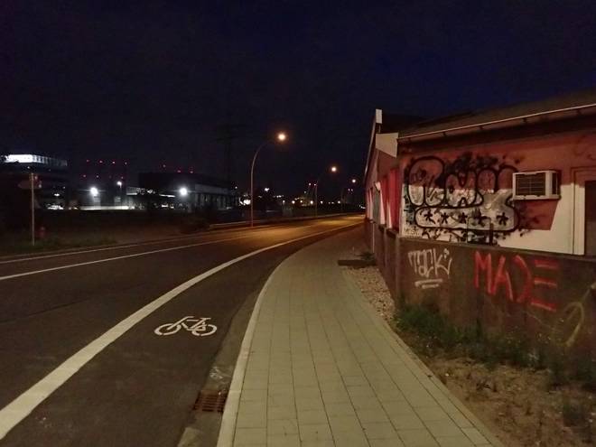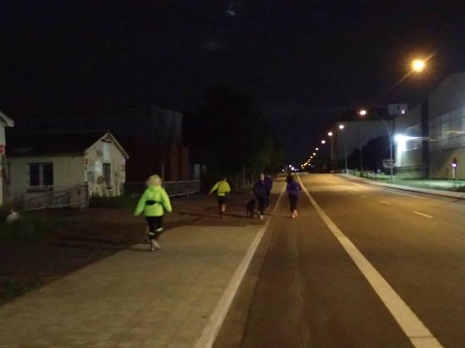 Reiherdamm Runde 1 3.28 Uhr / Km 2,9 Keine wirklich spektakuläre Runde, aber vielleicht gäbe es rechts und links des Wegen mehr zu sehen, wenn es heller wurde. |