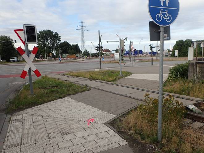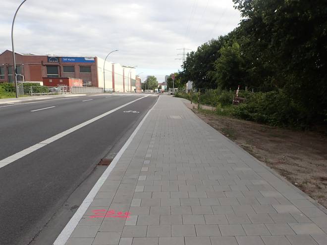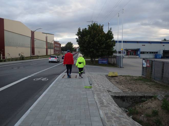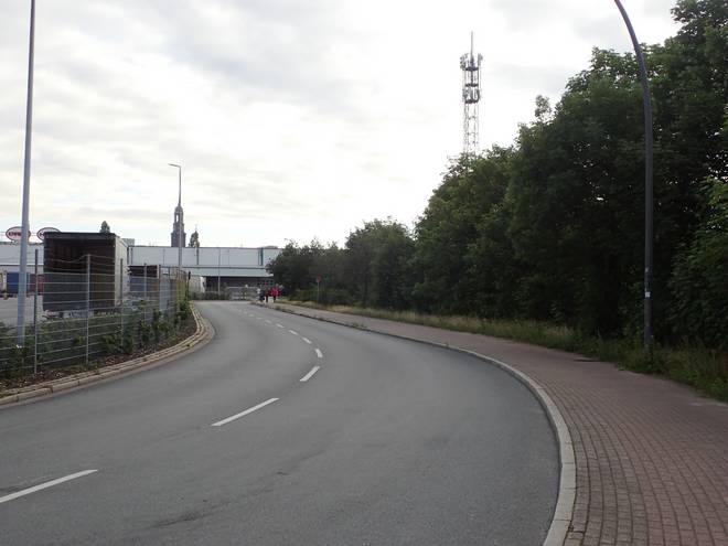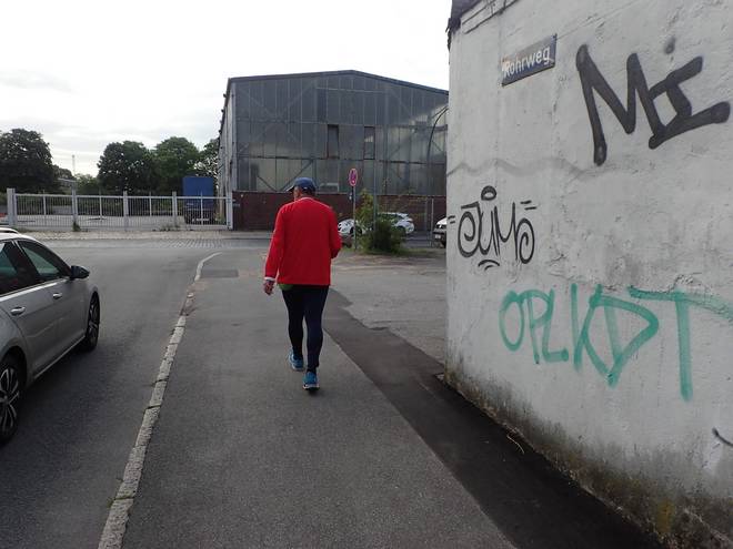 Ellerholzdamm Runde 15 7.46 Uhr / Km 41,6 Jetzt noch einmal scharf rechts in den Reiherdamm. Also nicht einfach rechts, sondern scharf rechts. Ist nichts Politisches. Christines Navi legt sehr viel Wert darauf. Alle Kurven bis hierher sollte Christine nach links oder rechts abbiegen. Hier aber verlangte das Navi, scharf rechts abzubiegen. Das war wohl wichtig, Also machte ich es jede Runde auch so. Und war damit erfolgreich. :-) Okay... ja... dem Pfeil hätte ich natürlich auch folgen können. |